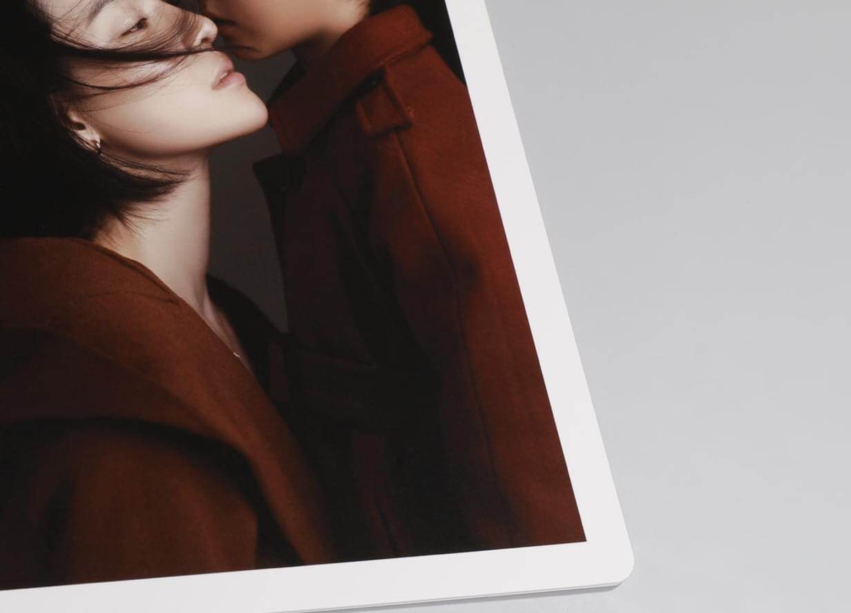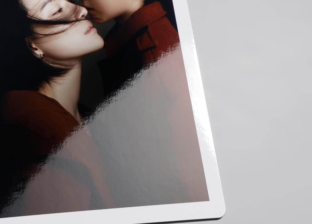 镜面纸张画面呈现靓丽效果,表面抛光高亮,极具反光特性,该纸张不宜用手直接触摸,容易在纸张上残留指纹。该相纸适合比较艳丽,明暗分明的色彩照片(如高端人像、艺术写真……),采用冲印工艺,作品呈现高清质感。