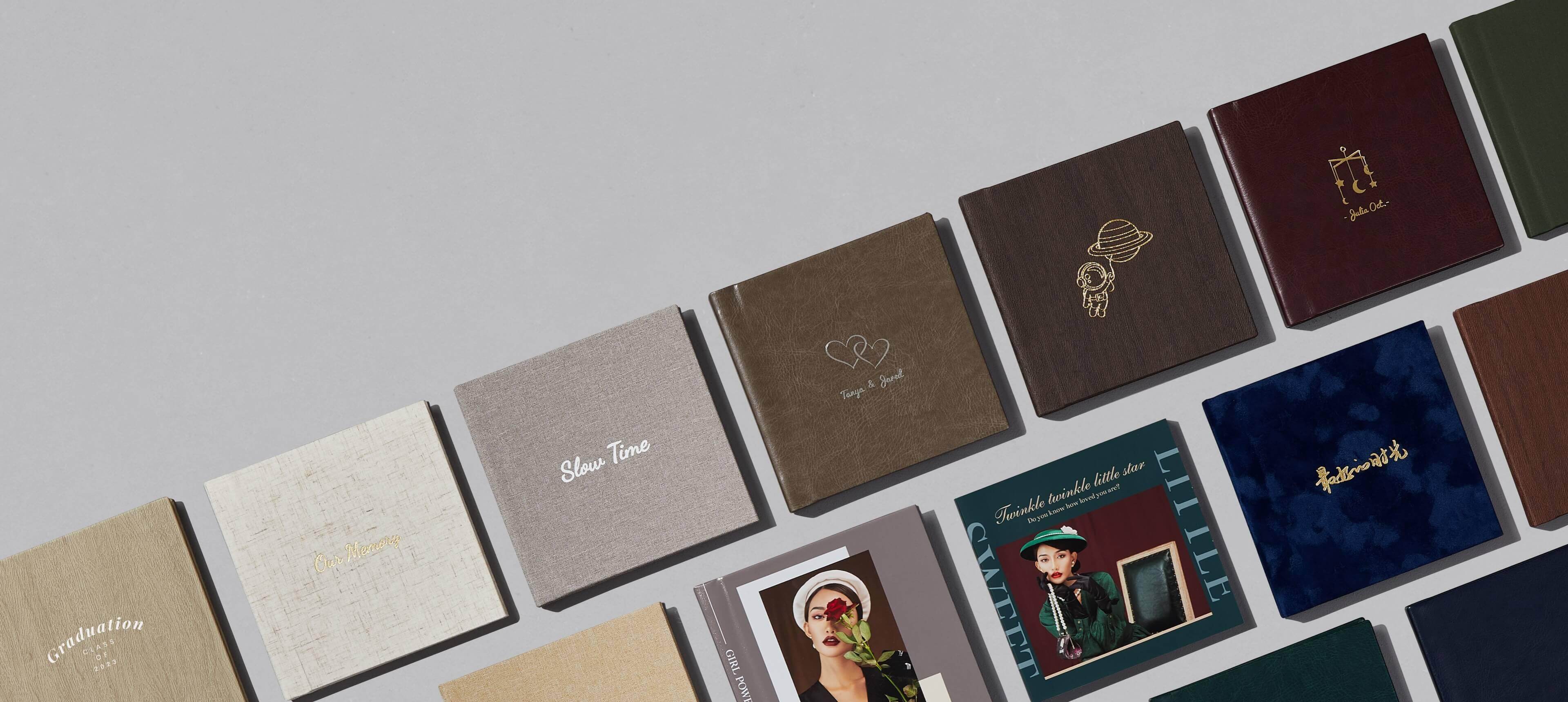 精选PU皮、环保布料、照片封面等经典相册封面制作工艺,适用于不同引流获客方式