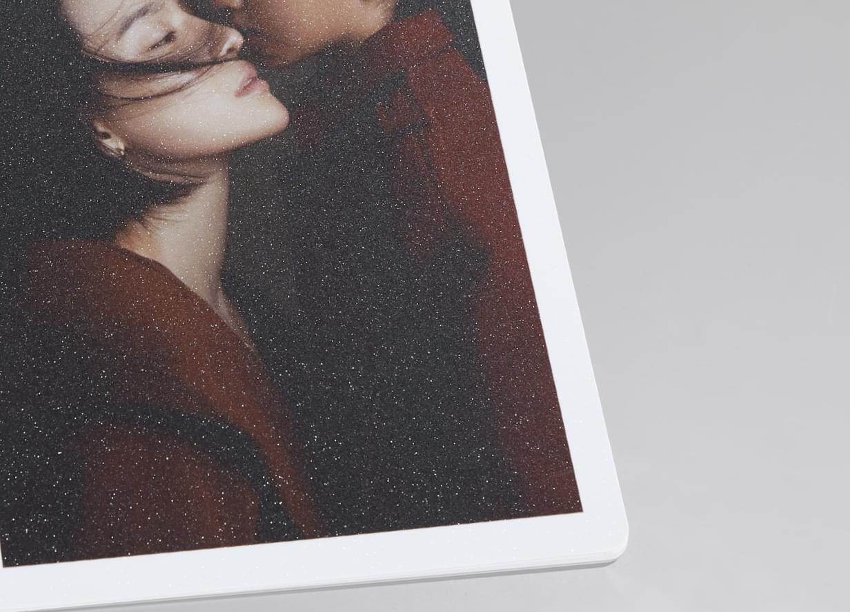 金属质感特种纸张,色彩穿透力强,突出画面中的明暗细节,纸张具有很好的金属光泽,画面极具冲击力,该纸张表面光滑无纹理,不宜直接用手触摸,容易在纸张上残留指纹。该相纸适合比较艳丽,明暗分明的色彩照片(如高端人像、艺术写真……),搭配冲印工艺,呈现高清质感。